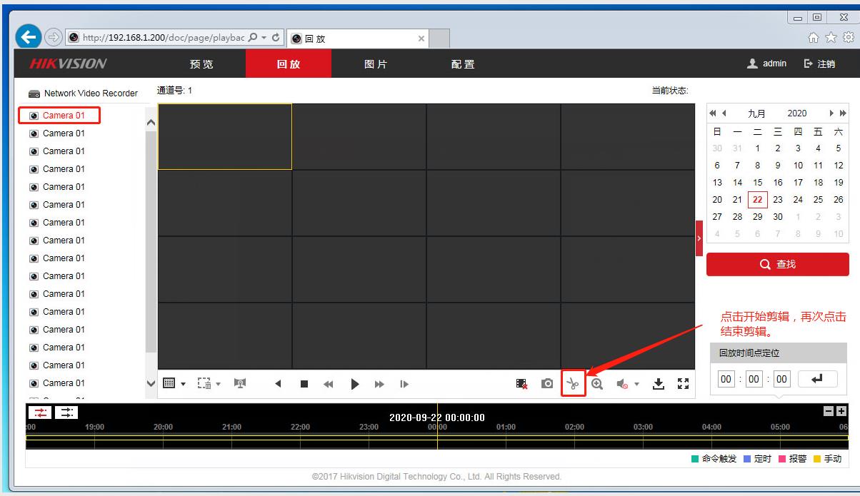 5、打開回放,如下圖左側選擇要下載錄像的通道,在右側選擇要日期和時間